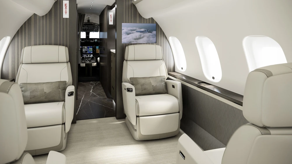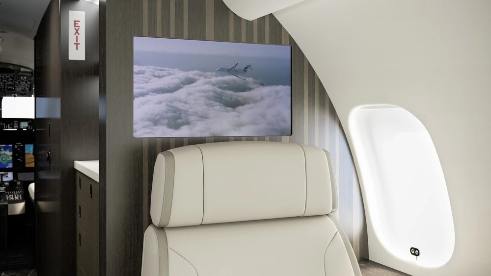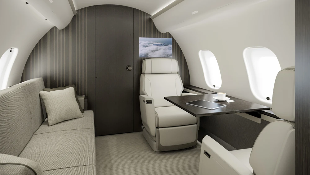 La cabina fue diseñada para un uso prolongado con una configuración de hasta 16 pasajeros y una distribución dividida entre trabajo, reuniones, comidas y descanso. El paquete a bordo incluye pantallas 4K de 24 pulgadas, conectividad de alta velocidad con opciones de cobertura global, asientos Nuage con propuesta ergonómica y el sistema de iluminación circadiana Soleil para reducir el desgaste en viajes largos. El sistema Bombardier Pur Air combina un filtro HEPA con renovación de aire para mantener la calidad ambiental durante toda la misión.
